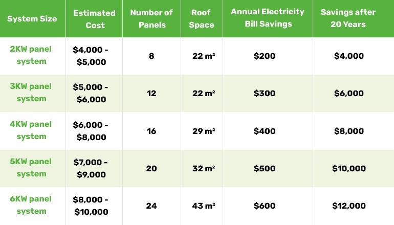 The estimated costs of solar panels mentioned in the table are typically what you can expect based on the system you choose. However, he cost of installing solar panels for your specific home will depend on the following factors: